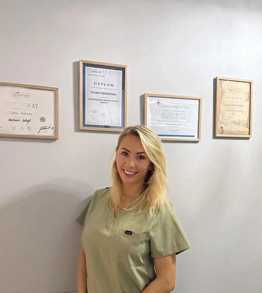 Kobieta, dzięki której odnajdziesz drogę do naturalnego piękna. Jest pasjonatką naturalnego odmładzania twarzy oraz poprawy kondycji skóry. Od lat zgłębia sztukę manualnych technik masażu, jak i nowoczesnych terapii z wykorzystaniem profesjonalnych urządzeń kosmetologicznych. Nieustannie poszerza swoją wiedzę i umiejętności – obecnie uczęszcza do specjalistycznej szkoły masażu, by jeszcze lepiej odpowiadać na potrzeby klientek i klientów.